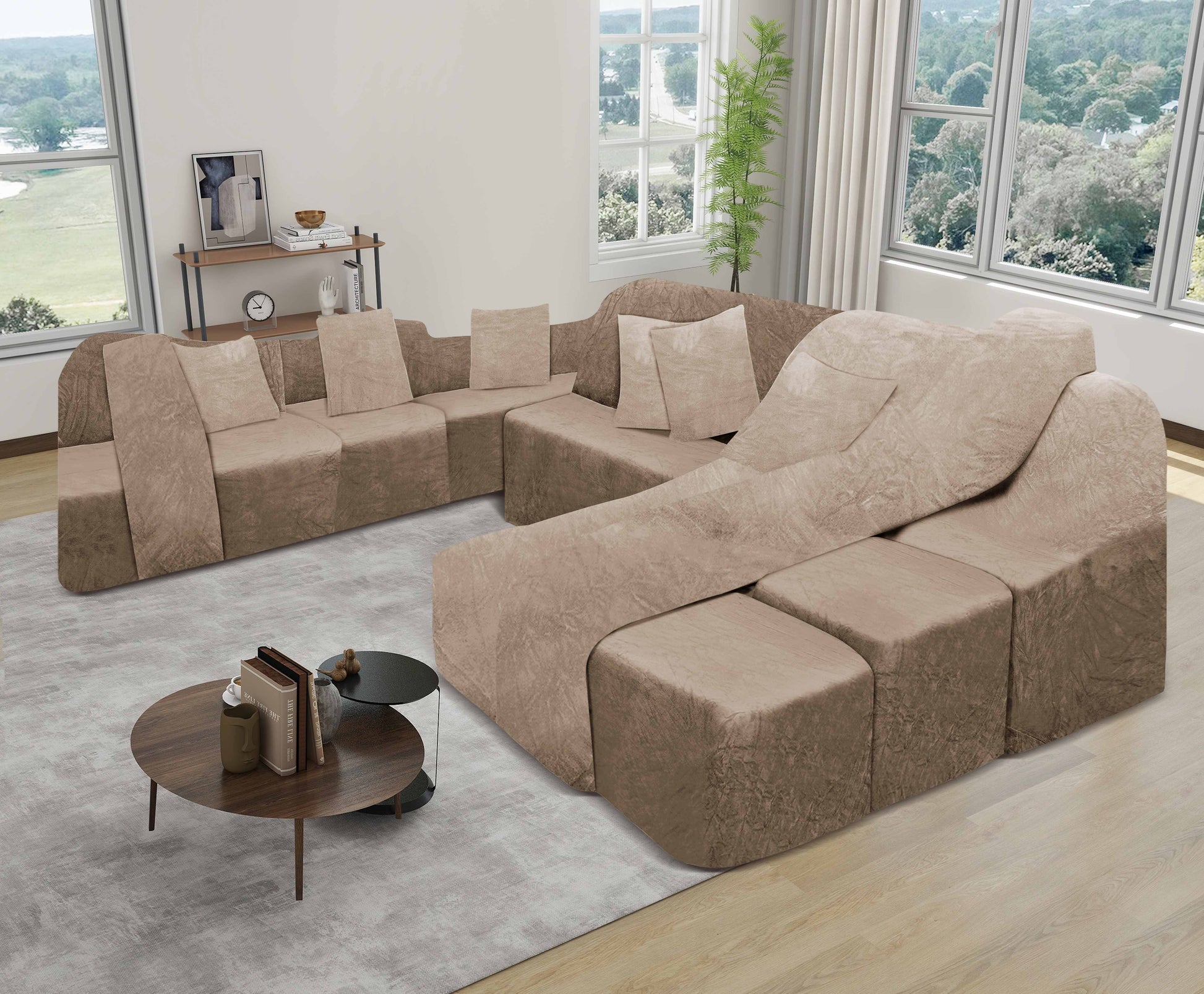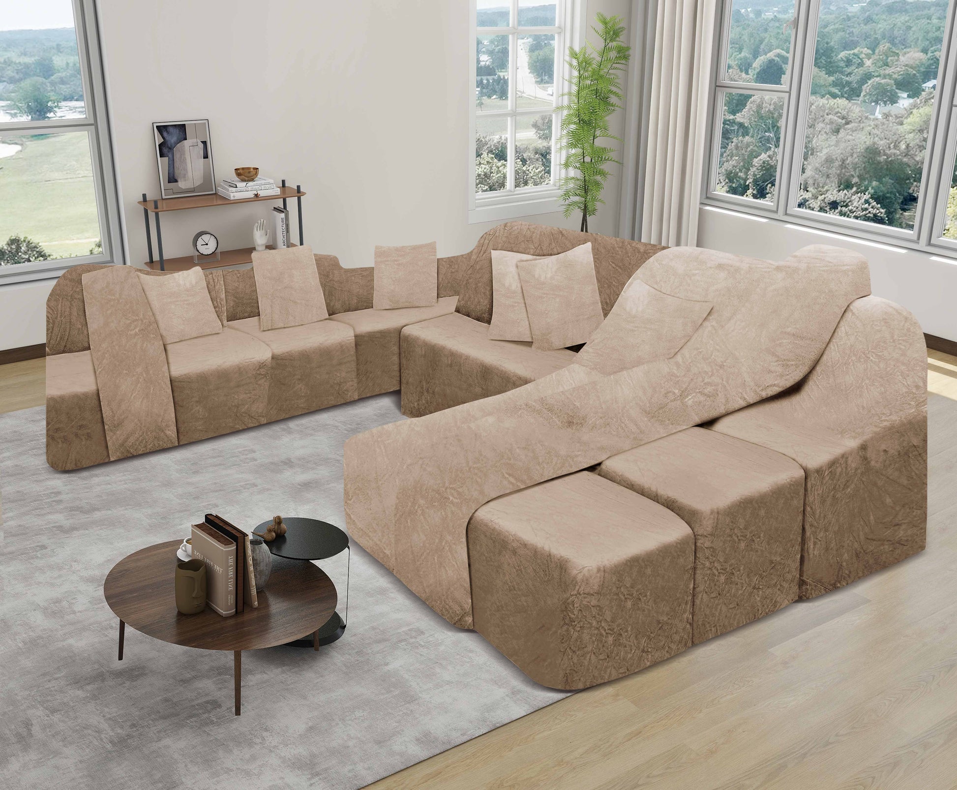 ✨ Funda de mueble SOFÁ CAMA 9 piezas – Terciopelo liso