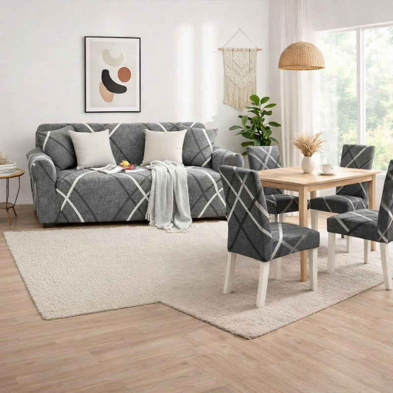PACK MODERN LINES (Funda de mueble 3-2-1 + 8 fundas de sillas + 6 fundas de cojines)